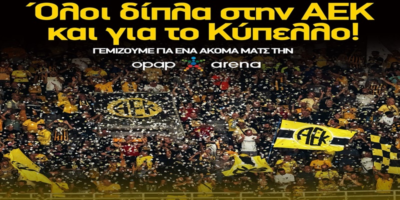 Το δικό της κάλεσμα προς τους φιλάθλους της ομάδας έκανε η ΠΑΕ ΑΕΚ εν όψει της αυριανής αναμέτρησης Κυπέλλου με τον Άρη για την φάση των «16», καλώντας τους να στηρίξουν με πάθος την ομάδα στις κερκίδες της «Αγιάς Σοφιάς-OPAP Arena».