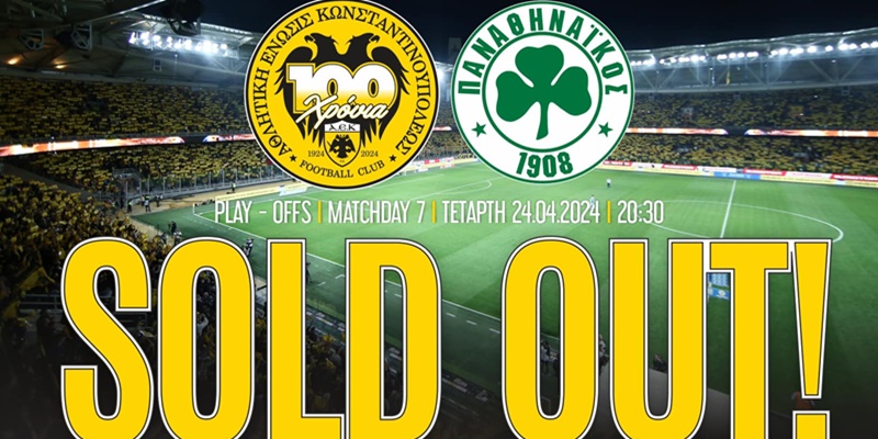 Όπως ενημέρωσε η ΠΑΕ ΑΕΚ, δεν υπάρχει κανένα διαθέσιμο εισιτήριο για το αποψινό ντέρμπι.