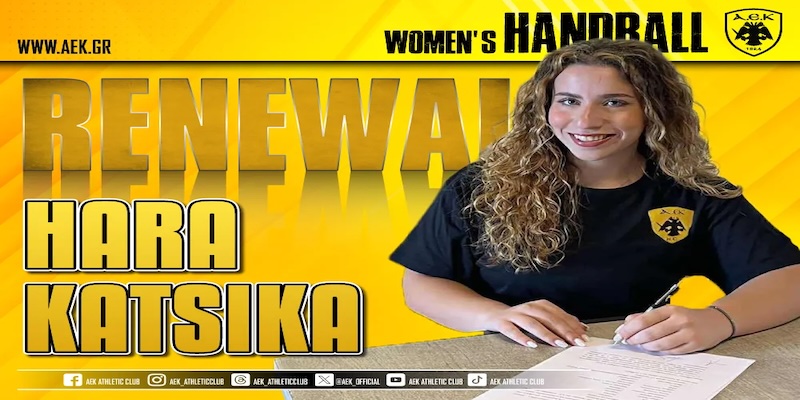 Η ΑΕΚ βρίσκεται στην ευχάριστη θέση να ανακοινώσει την ανανέωση της συνεργασίας της με την Χαρά Κατσίκα. Η 20χρονη (11/09/2004) δεξιά εξτρέμ θα αγωνιστεί και τη νέα σεζόν στη γυναικεία ομάδα Χάντμπολ της ΑΕΚ.