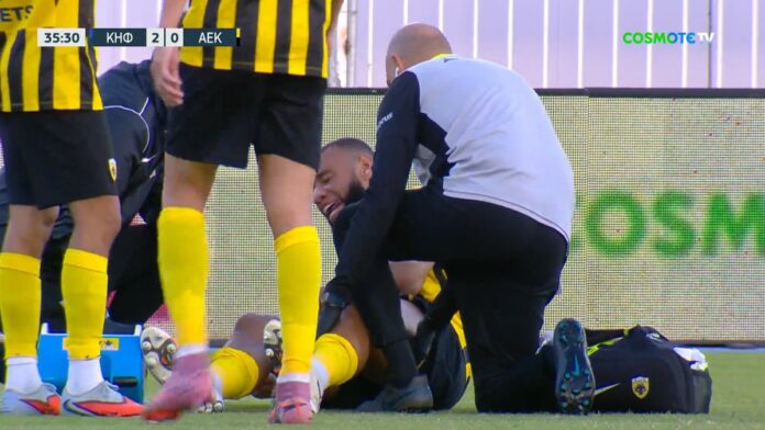 Συναγερμός επικρατεί στις τάξεις της ΑΕΚ για την κατάσταση του Άρολντ Μουκουντί, καθώς ο 27χρονος στόπερ έγινε αναγκαστική αλλαγή στο 38ο λεπτό του αγώνα της Ένωσης με αντίπαλο την Κηφισιά, με τον Φελίπε Ρέλβας να παίρνει τη θέση του.