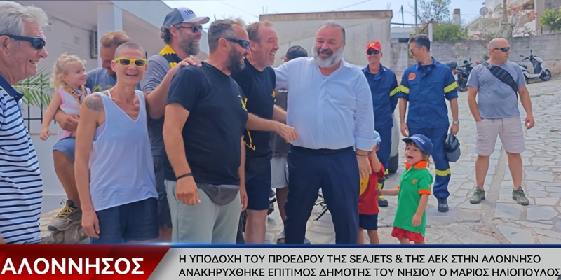 Αποθεωτική υποδοχή επιφύλασαν οι φίλοι της ΑΕΚ στον Μάριο Ηλιόπουλο κατά την άφιξη του Προέδρου των «κιτρινόμαυρων» στην Αλόννησο.