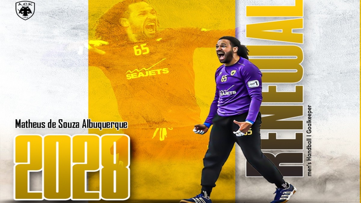 «Η ΑΕΚ βρίσκεται στην ευχάριστη θέση να ανακοινώσει την ανανέωση της συνεργασίας της με τον “RJ” Ματέους. Ο διεθνής με την Εθνική Βραζιλίας γκολκίπερ θα παραμείνει στην ανδρική ομάδα Χάντμπολ της ομάδας μας μέχρι το 2028!
