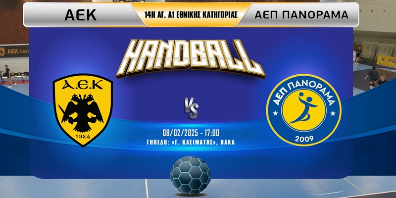 Δείτε σε live streaming τον εντός έδρας αγώνα της ΑΕΚ κόντρα στο Πανόραμα για την 14η αγωνιστική του Πρωταθλήματος της Α1 Χάντμπολ Γυναικών.