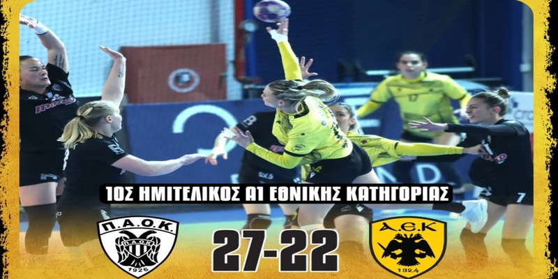 Την ήττα με 27-22 γνώρισε η ΑΕΚ από τον ΠΑΟΚ στην Θεσσαλονίκη, στον 1ο Ημιτελικό της Α1 Εθνικής Κατηγορίας Χάντμπολ Γυναικών. Η «Ένωση», που συμμετέχει για πρώτη φορά στην ιστορία της στα πλέι οφ του Πρωταθλήματος, έδειξε πολύ καλό πρόσωπο, διεκδικήσε τη νίκη, όμως η αστοχία της σε κρίσιμα σημεία, όπως και ορισμένα μεγάλα σουτ που βρήκε ο αντίπαλος, της στέρησαν το θετικό αποτέλεσμα. Η ομάδα του Βύρωνα Παπαδόπουλου, πάντως, έδειξε ικανή για να γυρίσει τη σειρά στη Θεσσαλονίκη, κάνοντας το 1-1 στο «Γ. Κασιμάτης».