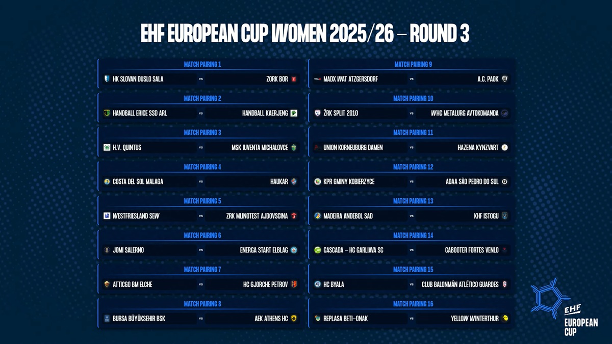 Ολοκληρώθηκε το μεσημέρι της Τρίτης (7/10) η κλήρωση για τον 3ο γύρο (σ.σ. φάση των «32») του EHF European Cup.