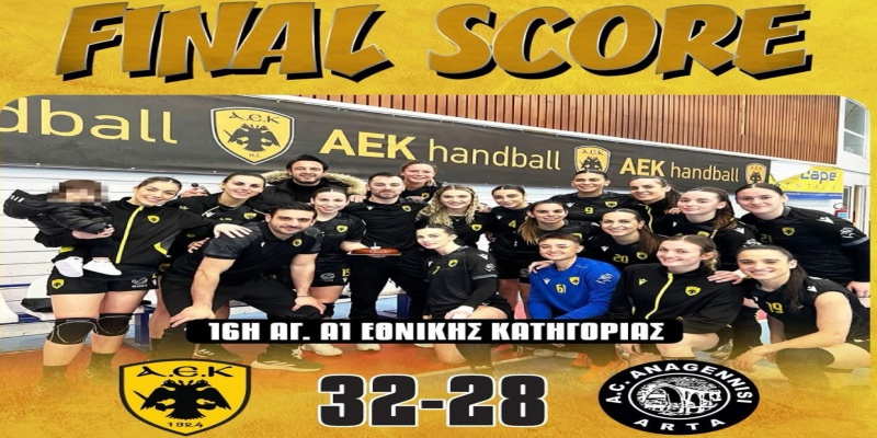 Η γυναικεία ομάδα Χάντμπολ της ΑΕΚ νίκησε 32-28 την Αναγέννηση Άρτας, στο πλαίσιο της 16ης αγωνιστικής της Α1 Εθνικής Κατηγορίας και έκανε μεγάλο βήμα για την 4άδα.