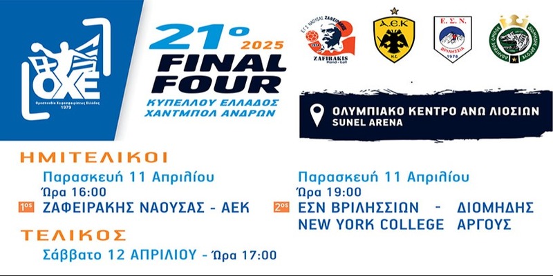 Κυκλοφόρησαν τα εισιτήρια για τους αγώνες του Final-4 του Κυπέλλου Ελλάδας Χάντμπολ ανδρών που θα διεξαχθεί το διήμερο 11-12 Απριλίου στην «SUNEL Arena».