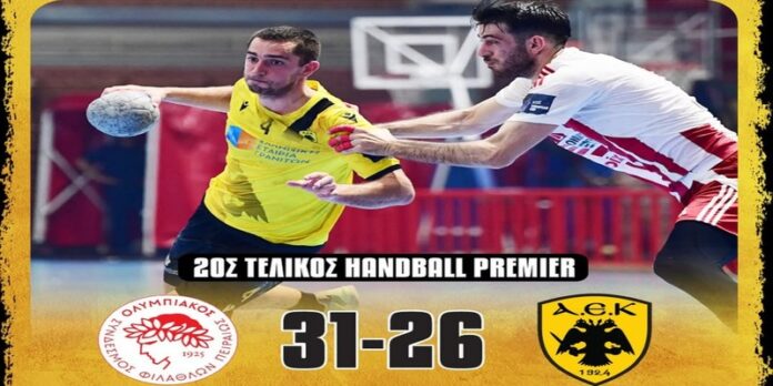 Δεύτερη διαδοχική ήττα για την ΑΕΚ στους τελικούς της Handball Premier αφού η ανδρική ομάδα της «Ένωσης» παρουσιάστηκε κατώτερη των περιστάσεων, ηττήθηκε στην Ηλιούπολη από τον Ολυμπιακό με σκορ 31-26 και πλέον βρίσκεται με την πλάτη στον τοίχο στη σειρά των τελικών.