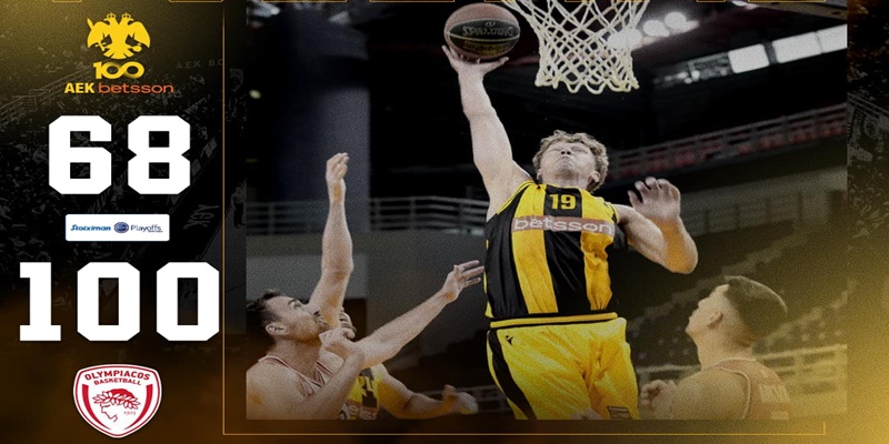 Η ΑΕΚ γνώρισε νέα ήττα από τον Ολυμπιακό στην έδρα της με 68-100 στο δεύτερο παιχνίδι της προημιτελικής σεζόν και έμεινε εκτός συνέχειας στα Play-off της Basket League.