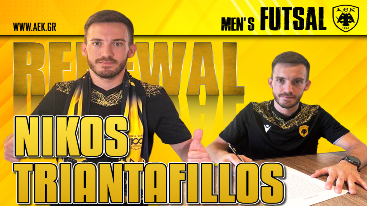 «H AEK βρίσκεται στην ευχάριστη θέση να ανακοινώσει την ανανέωση της συνεργασίας της με τον Νίκο Τριαντάφυλλο. Ο 28χρονος αθλητής υπέγραψε νέο τριετές συμβόλαιο και θα παραμείνει στο δυναμικό της ανδρικής ομάδας Futsal του Συλλόγου.