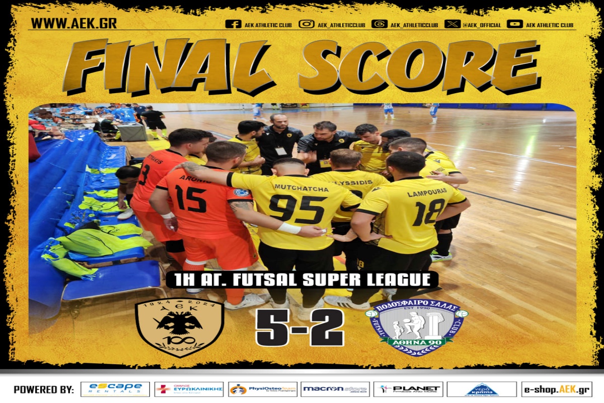 Η ΑΕΚ επικράτησε με 5-2 της Αθήνα ’90 για την 1η αγωνιστική της Futsal Super League, ξεκινώντας με τον καλύτερο τρόπο τις υποχρεώσεις της για το πρωτάθλημα