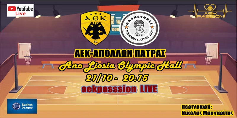 Μετά τις ήττες με μικρές διαφορές απέναντι στο Λαύριο και τον Ολυμπιακό (πρώτη φορά μετά το 2009 που ξεκινά με δύο σερί αρνητικά αποτελέσματα) και τη μεγάλη νίκη επί της Λούντβιγκσμπουργκ στην πρεμιέρα της στο BCL, η ΑΕΚ Betsson υποδέχεται στο Κλειστό των Άνω Λιοσίων τον Απόλλωνα Πατρών με στόχο να καταγράψει την πρώτη της νίκη στο πρωτάθλημα της Basket League.