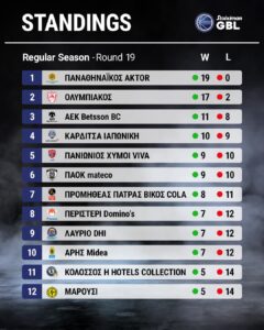 Η βαθμολογία έπειτα από 19 αγωνιστικές: