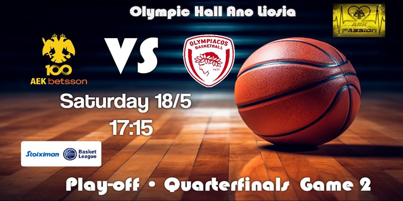 Η ΑΕΚ φιλοξενεί τον Ολυμπιακό για το δεύτερο παιχνίδι της προημιτελικής σειράς στο κλειστό των Άνω Λιοσίων αγώνας που θα διεξαχθεί στις 17:15. Η ομάδα του Ζούρου θέλει να δείξει ένα ανάλογο πρόσωπο με αυτό του πρώτου αγώνα, όπου προδόθηκε κυρίως από την έλλειψη ενέργειας και αγωνιστικού ρυθμού (και προπονήσεων), αλλά και τα πολλά φάουλ που φορτώθηκαν οι «κιτρινόμαυροι» και ιδιαίτερα οι ψηλοί παίκτες, με στόχο να μπορέσει υπερβεί τα όρια της και ενδεχομένως να καταφέρει να στείλει τη σειρά σε τρίτο παιχνίδι.