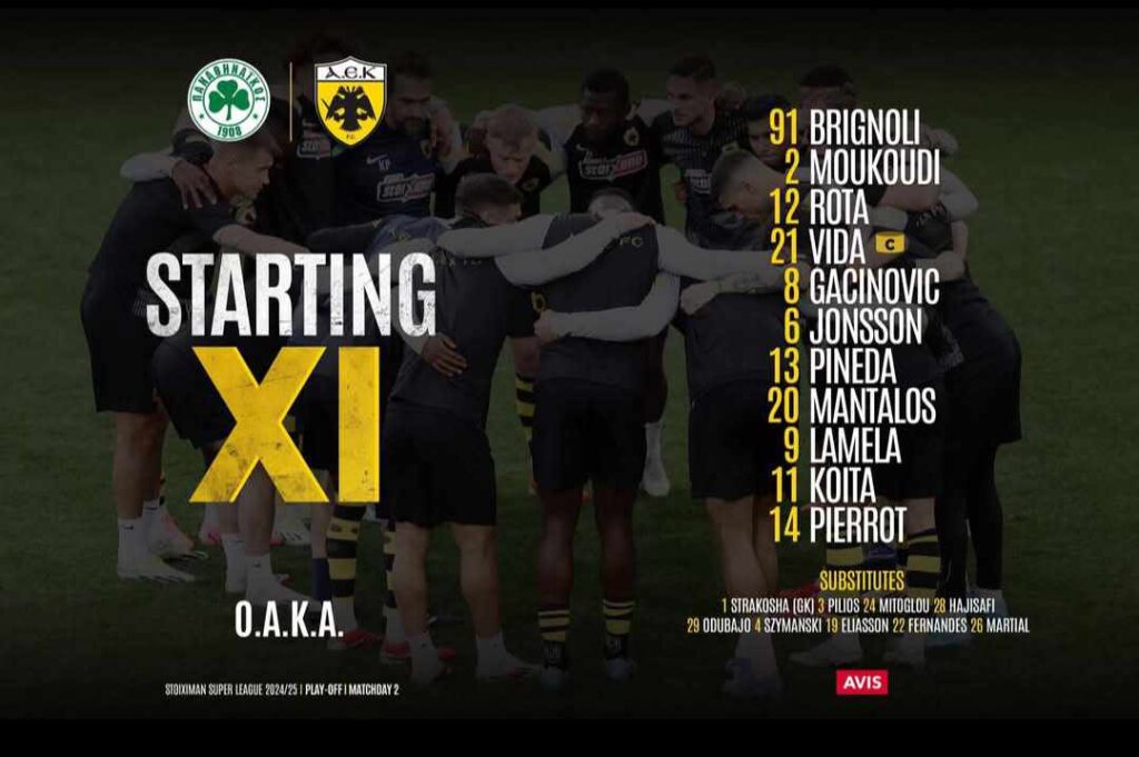 Με Γκατσίνοβιτς αριστερό μπακ, Ρότα βασικό και Λαμέλα , Μάνταλο , Κοϊτά στο αρχικό σχήμα του Αλμέιδα η ΑΕΚ για το ντέρμπι του ΟΑΚΑ με τον Παναθηναϊκό.