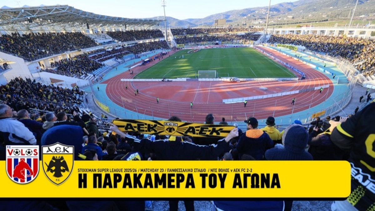 Με τον κόσμο της να γράφει ιστορία, με περισσότερους από 20.000 οπαδούς να «υπογράφουν» τη μεγαλύτερη μετακίνηση για εκτός έδρας παιχνίδι στην Ελλάδα, η ΑΕΚ αντιμετώπισε το απόγευμα της Κυριακής στο Πανθεσσαλικό Στάδιο τον Βόλο ΝΠΣ, με τον οποίο αναδείχθηκε ισόπαλη 2-2 για την 23η αγωνιστική της STOIXIMAN Super League 2025-26.