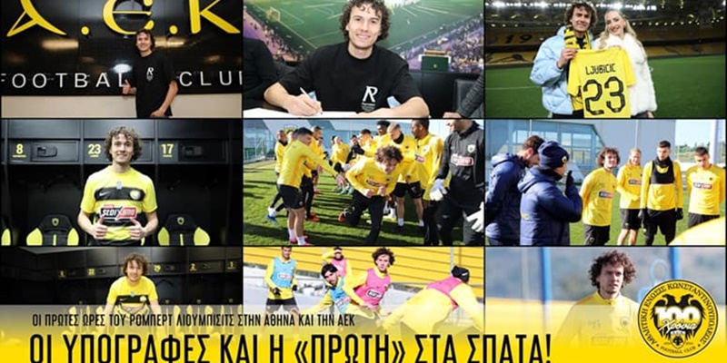 Ο Ρόμπερτ Λιούμπισιτς βρίσκεται από το μεσημέρι της Τετάρτης στην Αθήνα. Λίγο μετά την άφιξή του στη χώρα μας, μετέβη στα γραφεία της ΠΑΕ ΑΕΚ, συνοδευόμενος από τον πάτερα του, τη σύντροφό του και τους εκπροσώπους του, υπέγραψε το συμβόλαιό του και ξεναγήθηκε σε όλους τους χώρους της OPAP Arena.