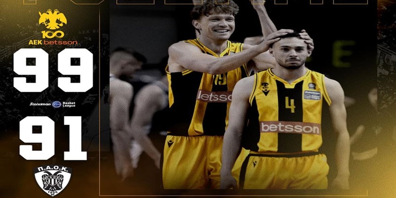 Η ΑΕΚ επικράτησε για τρίτη φορά φέτος επί του ΠΑΟΚ και κατέλαβε μαθηματικά την έβδομη θέση στην κατάταξη νικώντας στα Άνω Λιόσια με σκορ 99-91.