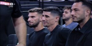 Τέλος ο τηλεοπτικός φακός της ΕΡΤ3 μεταξύ των πλάνων των βραβεύσεων, κατέγραψε και την παρουσία Ελλήνων ποδοσφαιριστών της ΑΕΚ στη «Sunel Arena». Συγκεκριμένα το παιχνίδι παρακολουθούν δίπλα δίπλα ο Πέτρος Μάνταλος, ο Σταύρος Πήλιος ο Σωτήρης Τσιλούλης και ο Γεράσιμος Μήτογλου.