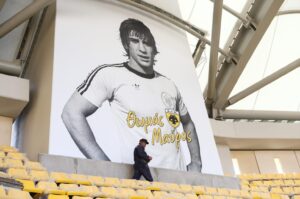 Στην «Opap Arena» βρίσκεται πλέον η εικόνα του μεγάλου αρχισκόρερ του ελληνικού ποδόσφαιρου και της ΑΕΚ Θ(ε)ωμά Μαύρου, που δεσπόζει μαζί με τις άλλες τρεις φωτογραφίες των θρύλων της Ένωσης.