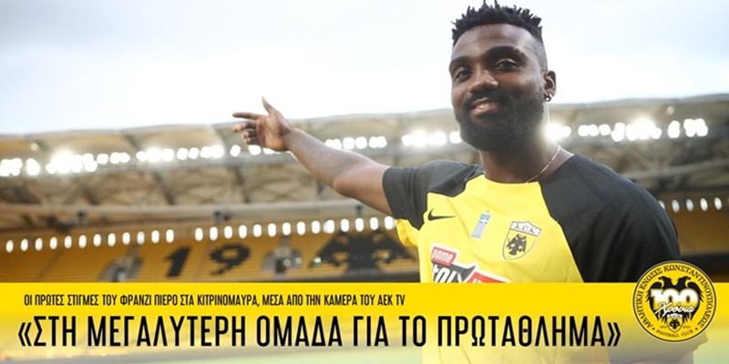 Ποδοσφαιριστής της ΑΕΚ είναι και επίσημα από το βράδυ της Τρίτης ο Φράνζι Πιερό. Ο διεθνής επιθετικός από την Αϊτή επισκέφτηκε τα γραφεία της ΠΑΕ στην OPAP ARENA, υπέγραψε το συμβόλαιό του και στη συνέχεια ξεναγήθηκε στους χώρους του γηπέδου.