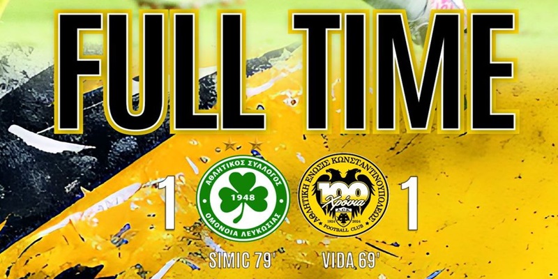 Στο 79′ η Ομόνοια έφερε το ματς στα ίσα (1-1). Ύστερα από ωραία κυκλοφορία από την κυπριακή ομάδα και μπαλιά στην πλάτη της άμυνας της ΑΕΚ, με τον Σίμιτς να εκτελεί εύστοχα από το ύψος της μεγάλης περιοχής. Στα καπάκια, δε, οι γηπεοδούχοι είχαν και νέα φάση στην περιοχή του «δικεφάλου».