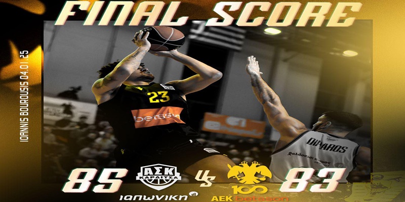 ΗΑΕΚ δεν κατάφερε να ξεκινήσει το 2025 με τον τρόπο που άφησε το προηγούμενο ημερολογιακό έτος γνωρίζοντας την ήττα με 85-83 στην Καρδίτσα απέναντι στην ομώνυμη ομάδα, στο πλαίσιο της 13ης αγωνιστικής. Στην αρχή η ΑΕΚ μπήκε δυνατά αλλά η Καρδίτσα αντέδρασε πέρασε μπροστά με έξι, με την «Ένωση» στο τέλος του δεκαλέπτου να μειώνει σε 24-23. Στην δεύτερη περίοδο ο «Δικέφαλος» προηγήθηκε με επτά, όμως οι γηπεδούχοι μείωσαν στο 48-50 που ήταν και το σκορ του ημιχρόνου. Το τρίτο δεκάλεπτο δεν διαφοροποιήθηκε από τα δύο πρώτα με τους «κιτρινόμαυρους» να προηγούνται στην ολοκλήρωση του με +4 (59-63). Στο τελευταίο δεκάλεπτο η Καρδίτσα με οδηγό τον Άλεν εκμεταλλεύτηκε τα λάθη της ΑΕΚ στις δύο πλευρές του παρκέ και προηγήθηκε με πετά. Η ΑΕΚ προσπάθησε να μειώσει και είχε την ευκαιρία να στείλει το ματς στην παράταση, αλλά ο Χαμπ αστόχησε σε λέι-απ υπό την πίεση ου Οκόρο