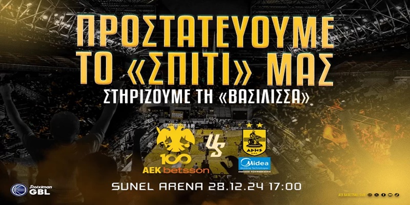 Η «Βασίλισσα» εξέδωσε ανακοίνωση-κάλεσμα προς τον κόσμο, ώστε οι φίλαθλοι της «Ένωσης» να στηρίξουν την προσπάθεια στο τελευταίο παιχνίδι για το 2024 με τον Άρη στη «Sunel Arena». Η ΑΕΚ θέλει τους φιλάθλους της στις κερκίδες του κλειστού γηπέδου στα Άνω Λιόσια, στηρίζοντας και προστατεύοντας παράλληλα την ομάδα και την έδρα της.