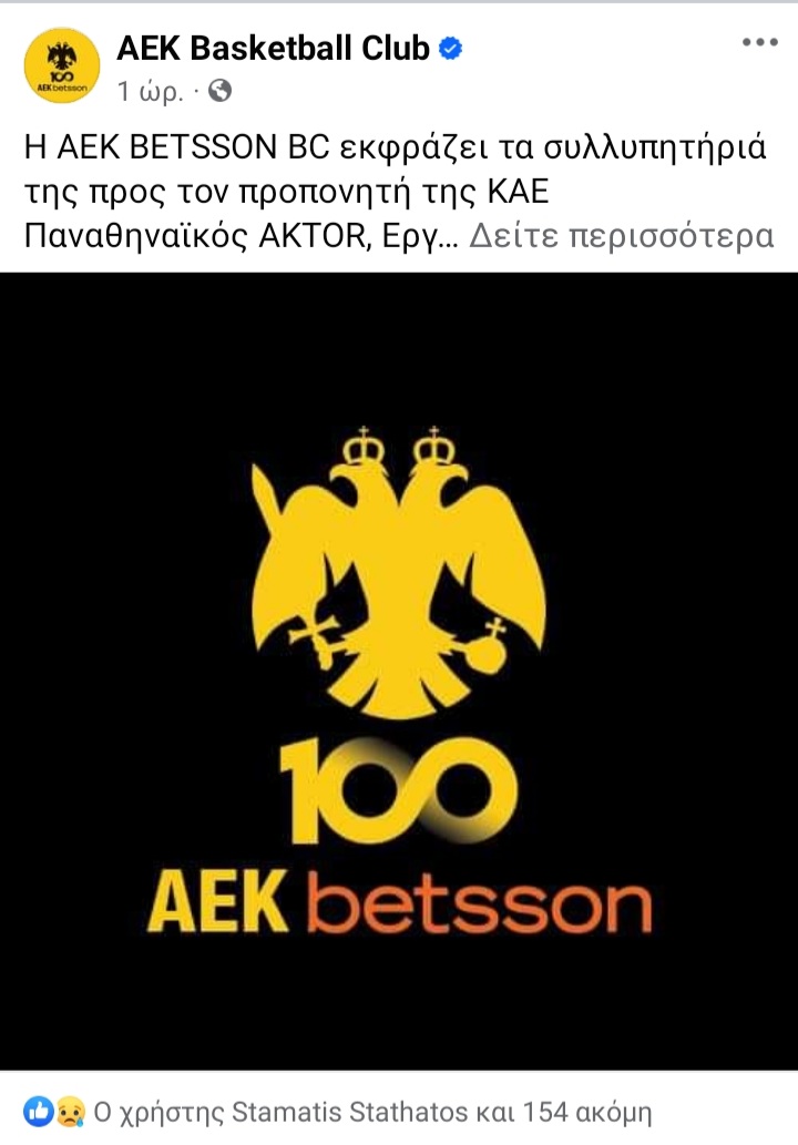 «Η ΑΕΚ ΒΕΤSSON BC εκφράζει τα συλλυπητήριά της προς τον προπονητή της ΚΑΕ Παναθηναϊκός ΑKTOR, Eργκίν Αταμάν, για την απώλεια του πατέρα του, Ιμπραήμ.