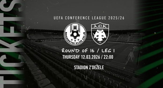 ”Η ΠΑΕ ΑΕΚ ανακοινώνει ότι αρχίζει η διαδικασία προαγοράς εισιτηρίων για τον εκτός έδρας αγώνα της ομάδας μας με τη NK Celje, για τη φάση των «16» του UEFA Conference League, που θα διεξαχθεί την Πέμπτη 12 Μαρτίου στις 21:00 (22:00 ώρα Ελλάδος), στο Stadion Z’dežele.