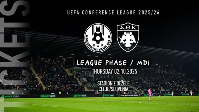 «Η ΠΑΕ ΑΕΚ ανακοινώνει ότι μπορείτε να προαγοράσετε το εισιτήριο σας για τον εκτός έδρας αγώνα της ομάδας μας με την NK Celje, που θα διεξαχθεί την Πέμπτη 2 Οκτωβρίου στις 21:00 (22:00 ώρα Ελλάδος) στο Stadion Z’dežele.