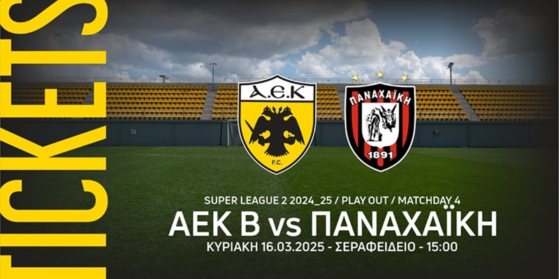 «Η ΠΑΕ ΑΕΚ ενημερώνει ότι έχει τεθεί σε λειτουργία το ηλεκτρονικό εισιτήριο του αγώνα ΑΕΚ B – Παναχαϊκή για την 4η αγωνιστική των play out της Super League 2, την Κυριακή 16/3/2025 στις 15:00, στο Σεραφείδειο, και λειτουργεί από την επίσημη ιστοσελίδα μας www.aekfc.gr όλο το 24ωρο.