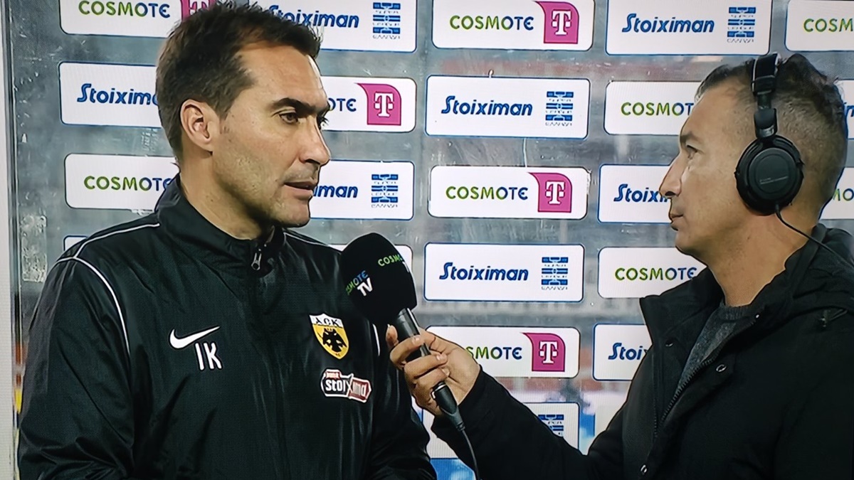 Ο Ηλίας Κυριακίδης αντί του τιμωρημένου Μάρκο Νίκολιτς μίλησε στην κάμερα της COSMOTE TV μετά την εκτός έδρας νίκη της ΑΕΚ με 1-0 κόντρα στον ΟΦΗ.