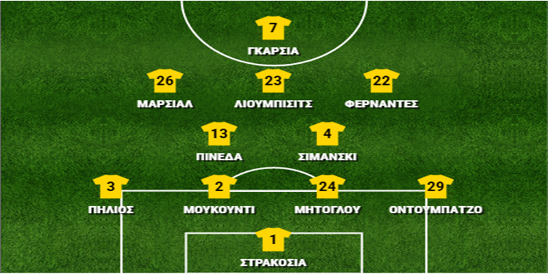 - Πήλιος(6): Αμυντικά δεν είχε πρόβλημα αλλά δεν μπόρεσε να βοηθήσει επιθετικά και γι’αυτό έγινε αλλαγή για να μπορέσει η ομάδα να πιέσει περισσότερο και να αξιοποιηθεί ο Μαρσιάλ από τα αριστερά.