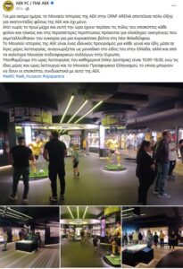 «Για μία ακόμα ημέρα, το Μουσείο Ιστορίας της ΑΕΚ στην OPAP ARENA αποτέλεσε πόλο έλξης για εκατοντάδες φίλους της ΑΕΚ και όχι μόνο.