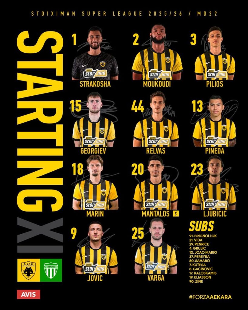 Αναλυτικά η ενδεκάδα της ΑΕΚ: