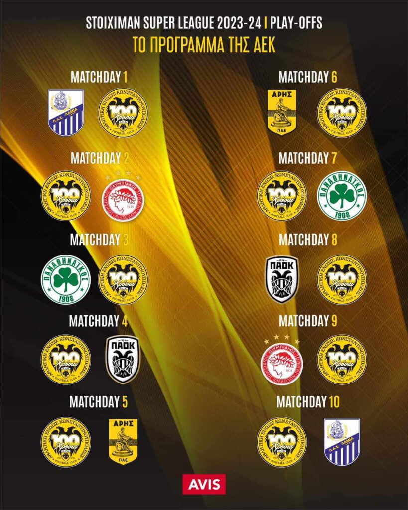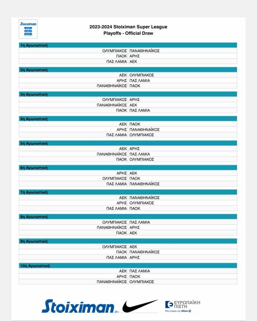 Mε τη Λαμία στο ”Αθανάσιος Διάκος” θα ξεκινήσει τους αγώνες των playoffs η ΑΕΚ, ενώ αμέσως μετά για τη 2η αγωνιστική, θα υποδεχθεί τον Ολυμπιακό στην OPAP Arena.