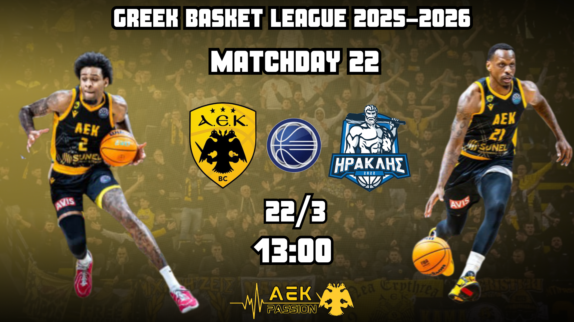 Η ΑΕΚ θα αντιμετωπίσει σήμερα την ομάδα του Ηρακλή σε αναμέτρηση που θα διεξαχθεί στη SUNEL Arena στο πλαίσιο της 22ης αγωνιστικής του πρωταθλήματος της Greek Basket League.