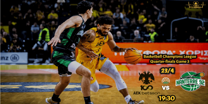 Σε μια κατάμεστη «SUNEL Arena» η ΑΕΚ θα δώσει μία καθοριστική μάχη για την φετινή χρονιά απόψε κόντρα στην Ναντέρ για το τρίτο παιχνίδι της προημιτελικής σειράς του Basketball Champions League όπου θα κριθεί το ποια ομάδα θα βρεθεί και παράλληλα θα φιλοξενήσει το Final-4 της διοργάνωσης.