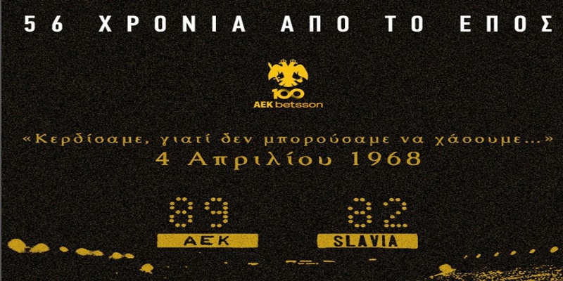 4 Απριλίου 1968. Η ημέρα που το όνομα της ΑΕΚ γράφτηκε με χρυσά γράμματα στην Ιστορία. Η ομάδα μπάσκετ της «Ένωσης», με πρωτεργάτες τους Αμερικάνο, Τρόντζο, Ζούπα, Λαρεντζάκη, Βασιλειάδη, υποτάσσει στο Καλλιμάρμαρο Στάδιο την ισχυρότατη εκείνη την εποχή Σλάβια Πράγας με 89-82 στον τελικό του Κυπέλλου Κυπελλούχων που παρακολούθησαν πάνω από 80.000 θεατές και μέχρι σήμερα παραμένει στα Ρεκόρ Γκίνες ως ο αγώνας μπάσκετ με την μεγαλύτερη προσέλευση κόσμου. Ο θρίαμβος αυτός, καθιέρωσε και το προσωνύμιο «Βασίλισσα» για την ΑΕΚ, η οποία έγινε η πρώτη ελληνική ομάδα με ευρωπαϊκό τίτλο σε οποιοδήποτε άθλημα.