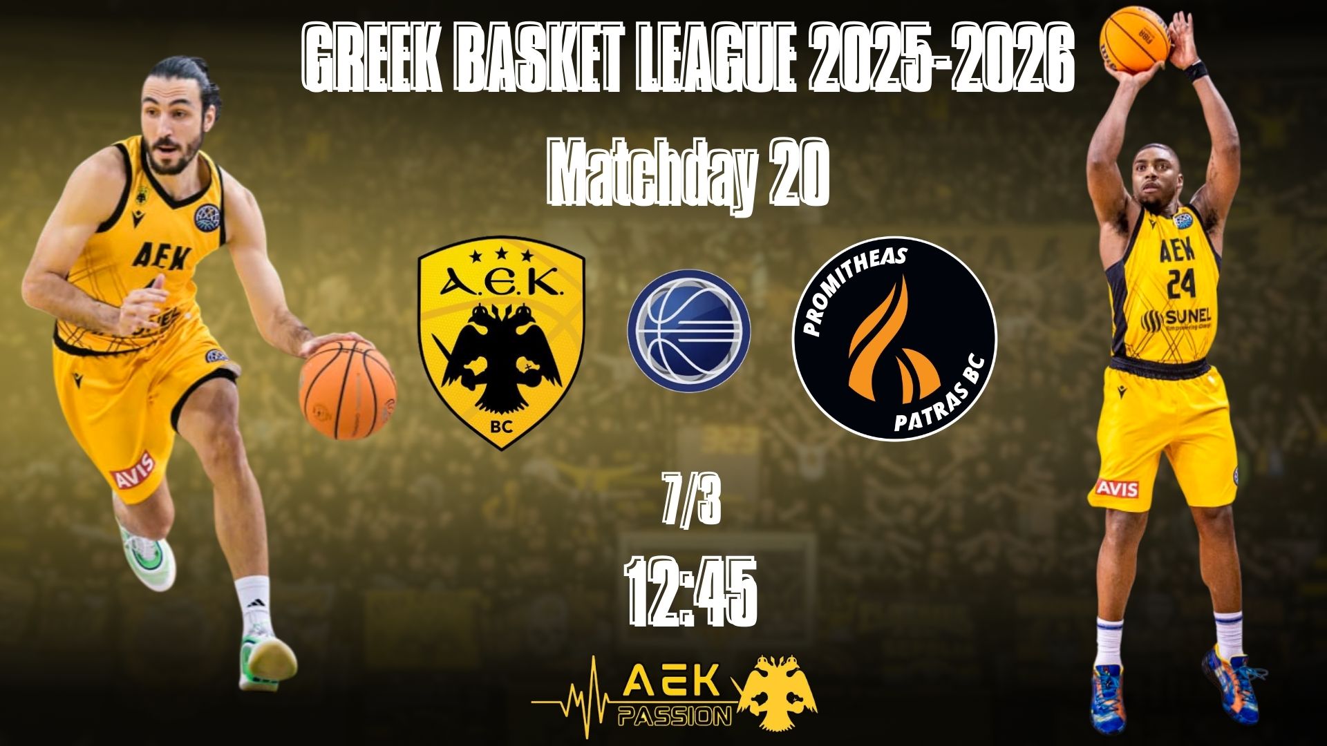 Η ΑΕΚ, έπειτα από την διακοπή λόγω των αγώνων των Εθνικών ομάδων, επιστρέφει στη δράση και θα υποδεχθεί σήμερα το μεσημέρι τον Προμηθέα Πάτρας στη «SUNEL Arena» στο πλαίσιο της 20ης αγωνιστικής της Basket League.