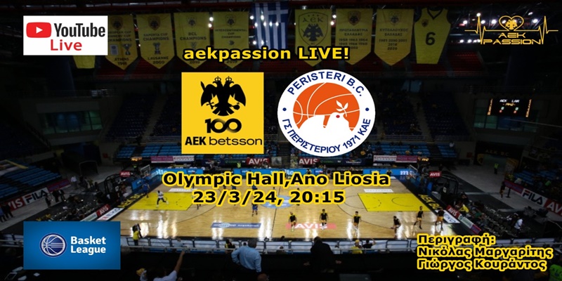Ο Νικόλας Μαργαρίτης και ο Γιώργος Κουράντος θα βρίσκονται στο κλειστό των Άνω Λιοσίων για να περιγράψουν ζωντανά την εξέλιξη του αγώνα μέσα, από το κανάλι του AEKPASSION.GR στο YouTube.