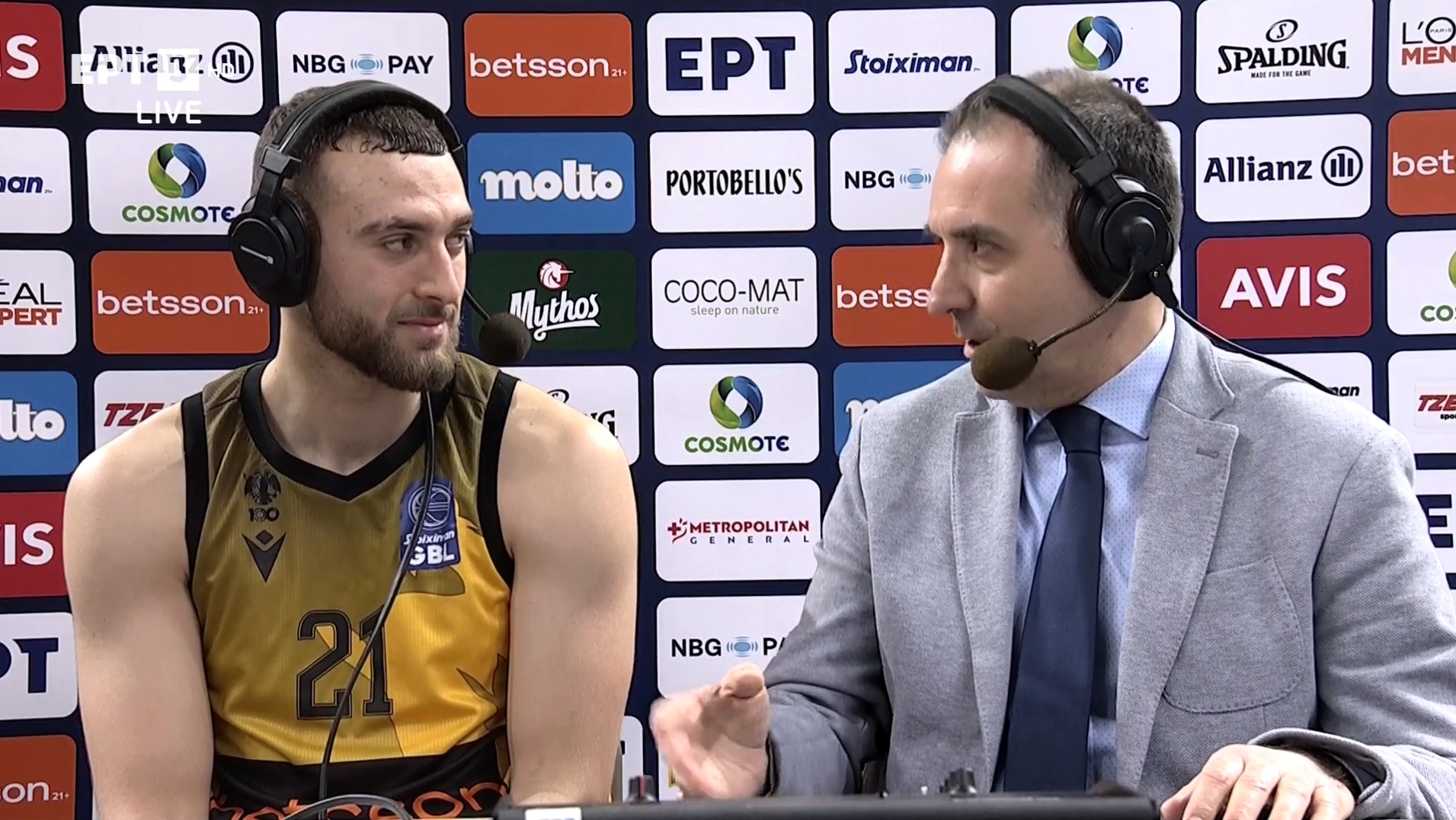 Ο Θεσσαλονικιός γκαρντ μετά την λήξη του ματς μίλησε στην κάμερα της ΕΡΤ αναφορικά με τις νίκες της ομάδας, το Fina;-8 που ακολουθεί στο πρόγραμμα, για το αν η ΑΕΚ είναι το φαβορί για την τρίτη θέση στο πρωτάθλημα, το όνειρο του BCL και τέλος για το αν νιώθει καλά στην ΑΕΚ.