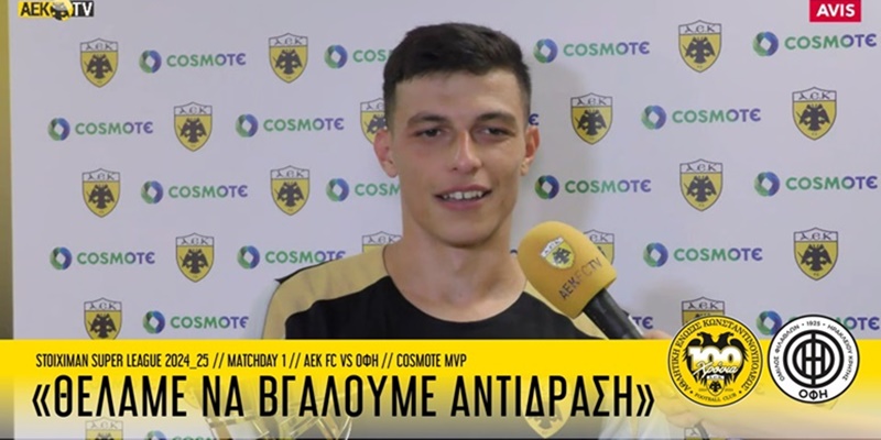 Κατά την παραλαβή του βραβείου του ο Σταύρος Πήλιος μίλησε στην κάμερα του ΑΕΚ TV τόσο για το ματς, όσο και για την προσωπική του απόδοση.