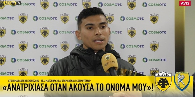 Δείτε όσα είπε ο Μεξικανός χαφ της ΑΕΚ μετά την ανάδειξη του ως MVP στη χθεσινή εντός έδρας αναμέτρηση με τον Παναιτωλικό.