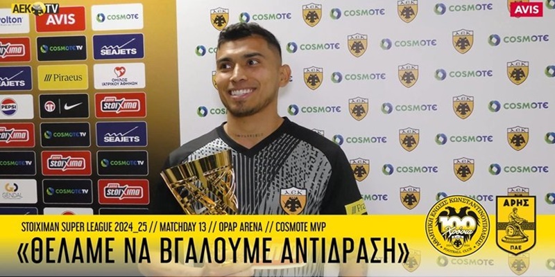 Αναλυτικά όσα είπε ο Μεξικανός χαφ στο AEK TV μετά την ανάδειξη του ως MVP στην χθεσινή επικράτηση με 4-0 επί του Άρη.