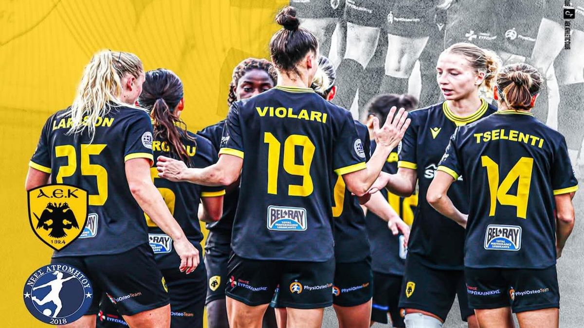 Με άνετη επικράτηση ολοκλήρωσε τις υποχρεώσεις της για την 15η αγωνιστική της Α’ Εθνικής η γυναικεία ομάδα ποδοσφαίρου της ΑΕΚ. Η Ένωση αντιμετώπισε τις Νέες Ατρομήτου, όπου και είχε εύκολο απόγευμα επικρατώντας με 3-0 στους Αγίους Αναργύρους και η προσδοηυ στρέφεται πλέον στο Κύπελλο, όπου αντιμετωπίζει τον Ν.Π.Σ. Βόλου για την πρόκριση στα ημιτελικά του θεσμού.