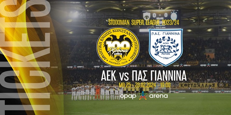 Η ΠΑΕ ΑΕΚ ανακοινώνει ότι στις 16.00 θα τεθούν στην κυκλοφορία τα εισιτήρια για τον αγώνα Πρωταθλήματος της ομάδας μας με τον ΠΑΣ Γιάννινα (28/2 – 19.00), στην OPAP ARENA.