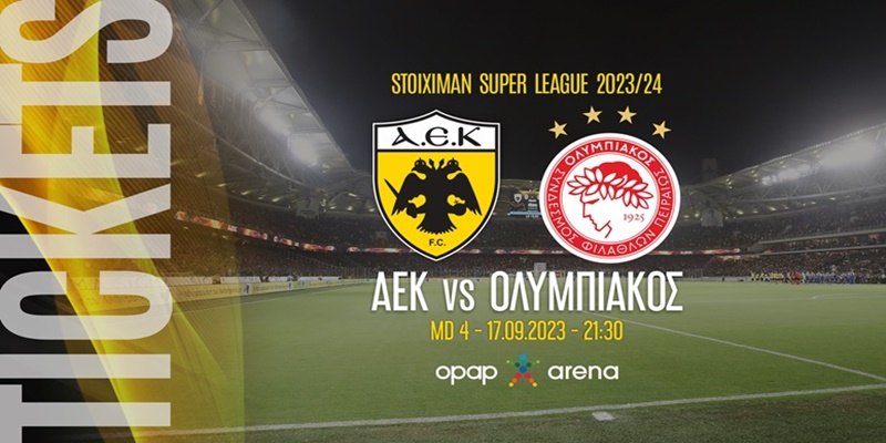 «Η ΠΑΕ ΑΕΚ ανακοινώνει ότι τέθηκαν σε κυκλοφορία τα εισιτήρια για τον αγώνα της ομάδας μας με τον Ολυμπιακό (17/9 – 21.30), στην OPAP ARENA.
