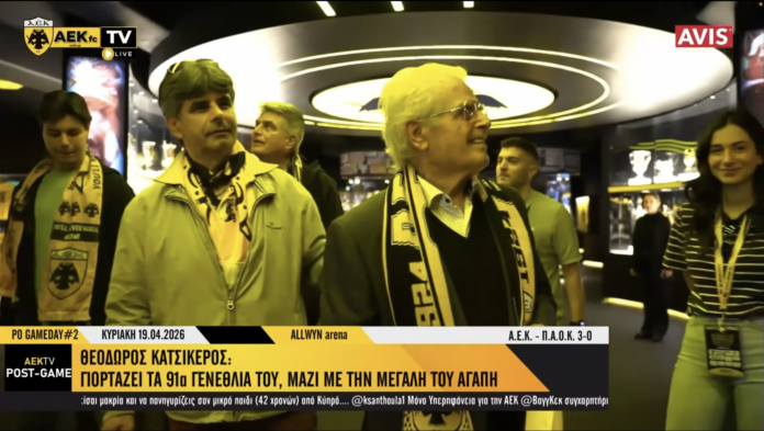 Ο Θεόδωρος Κατσικερός βρέθηκε στις εξέδρες του γηπέδου και μίλησε στην κάμερα του AEK TV, αποκαλύπτοντας πτυχές από τη μακρόχρονη σχέση του με την ομάδα. Όπως ανέφερε, είχε εργαστεί στο μπαρ του παλιού γηπέδου της Ένωσης, ζώντας από κοντά ιστορικές στιγμές του συλλόγου.